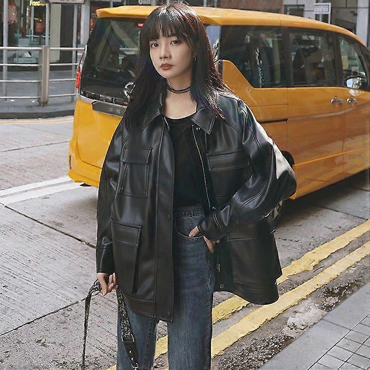 New Spring Autumn Winter Foreign Style Leather Clothing Women's Mid-length Plus Velvet Thick Ins Coat Tide Large Size Student Motorcycle Jacket