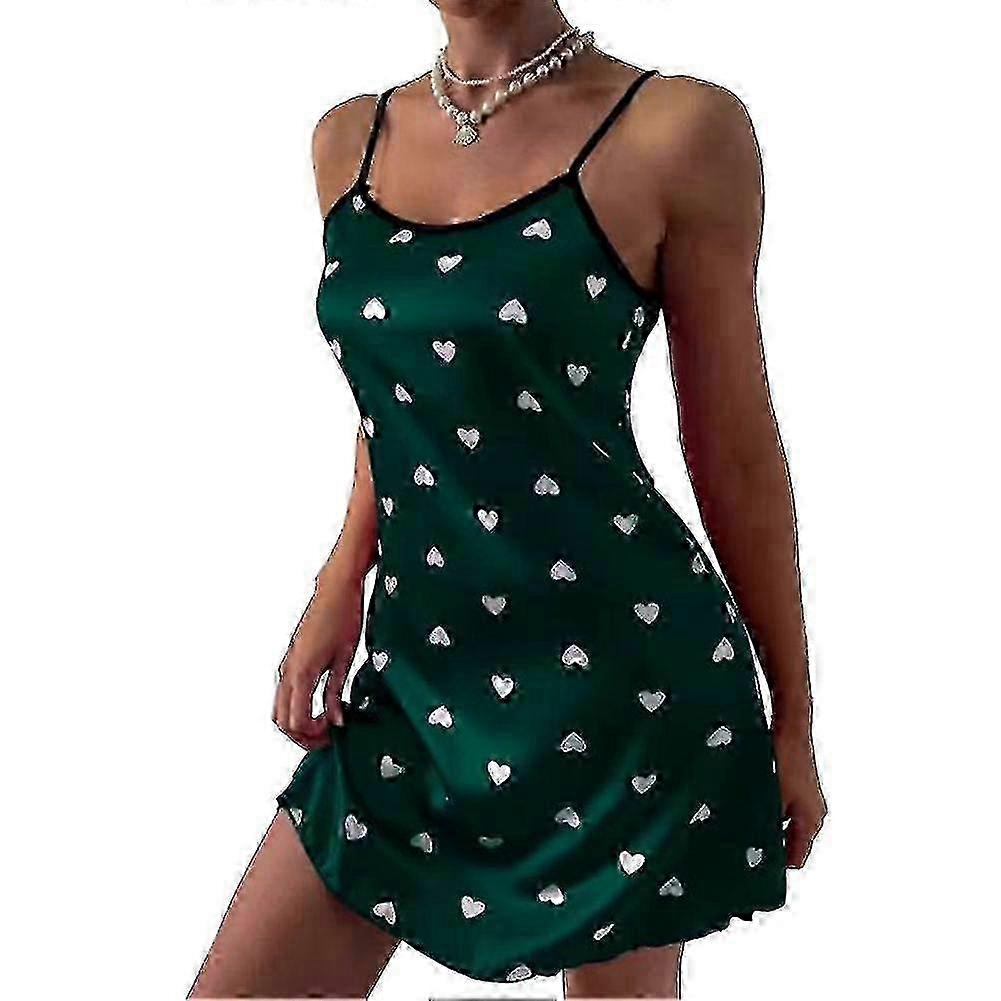 New Women's Sleepwear Satin Nightgown Silk Nighty Sleeveless Nightwear Chemise Heart Print