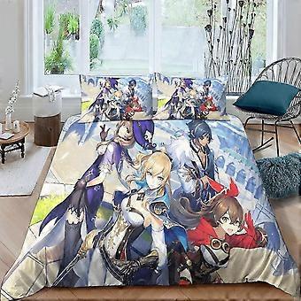 o3449 Lakan XIYIPAOLL Genshin 3D-tryckta anime-karaktärer Täcke för pojkar Flickor Täcke Överdrag Påslakan med dragkedja Stängning Sängkläder Set