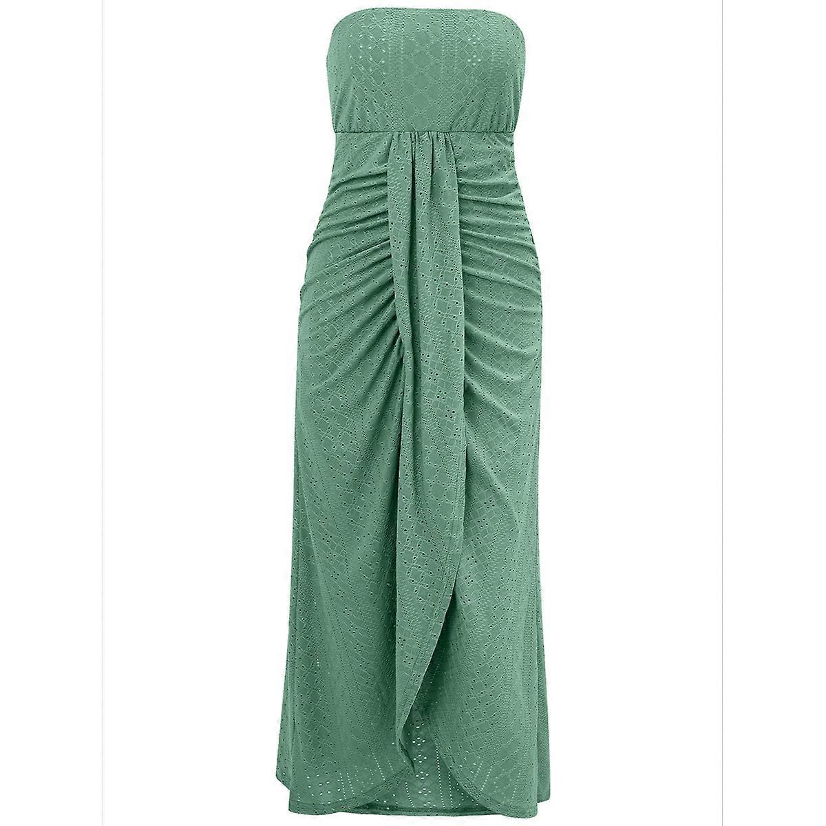 Off-Shoulder High Waist Dress Bean Green S