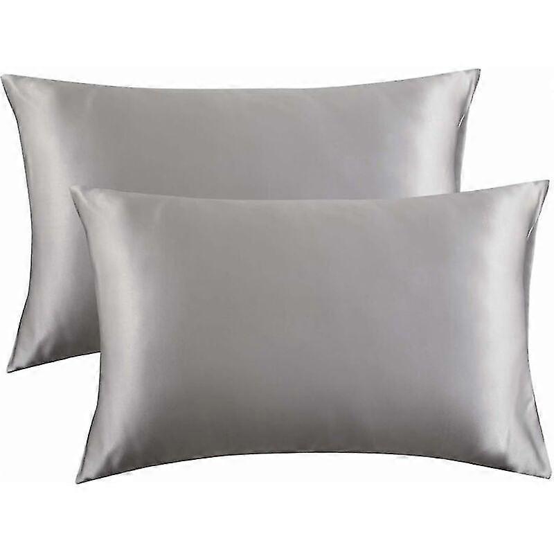 Pillowcase Satin Pillowcase Simulation Silk Pillowcase Solid Color Pillowcase Bedding Pillowcase, 2pcs (51*76cm) Silver Gray