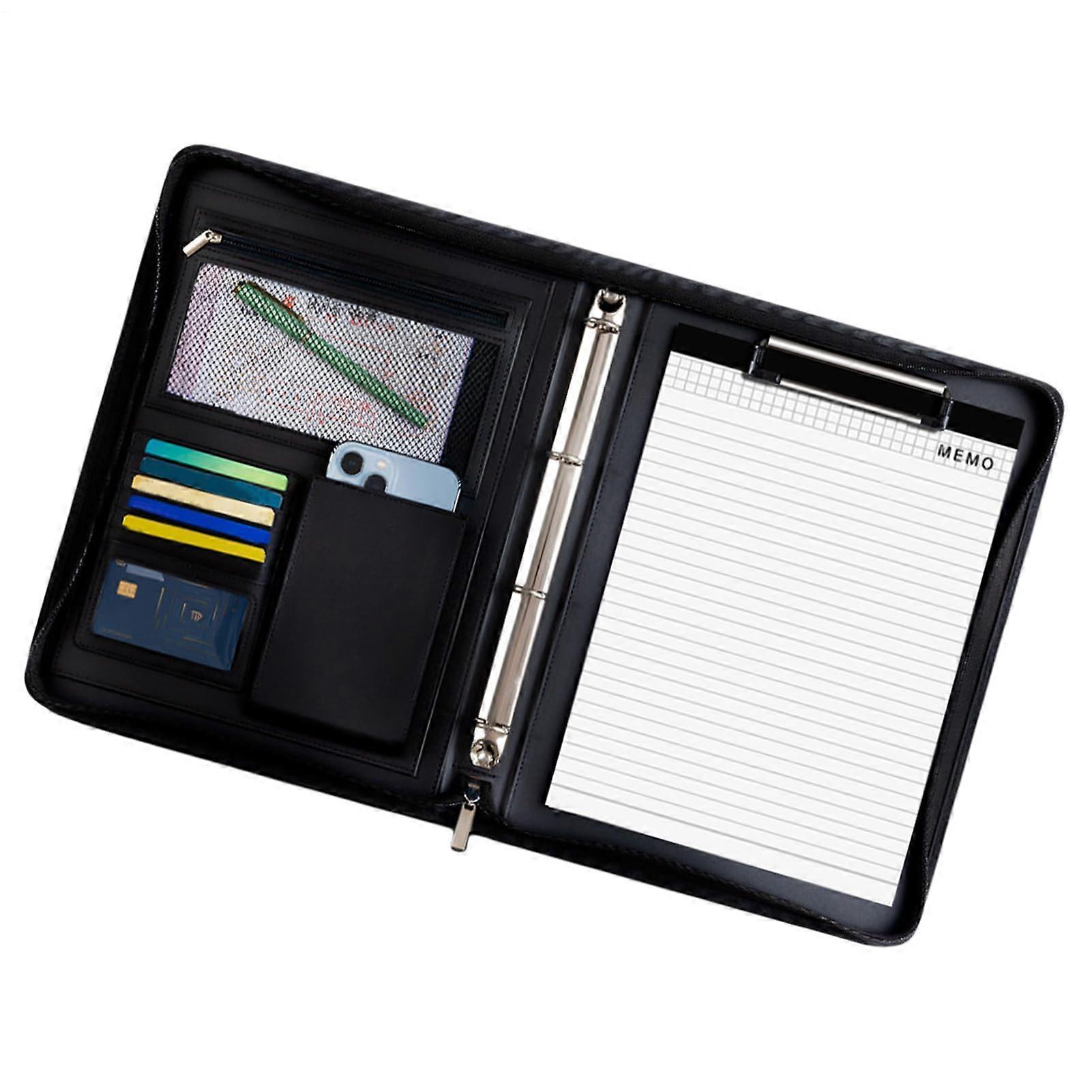 Leather Padfolio Executive Notepad Holder, CV File, Leather Folder Slim Profile, Black