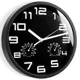 Väggklocka med termometer och hygrometer, 25 cm diameter