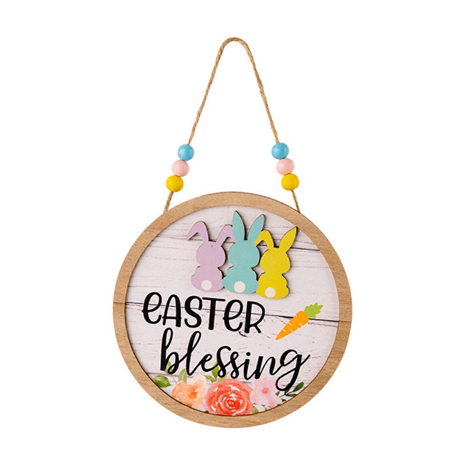 Easter Door Hanging Ornaments Easter Wood Decoration Rabbit Carrot Dwarfs Sign Pendant Happy Easter Decoration 2023