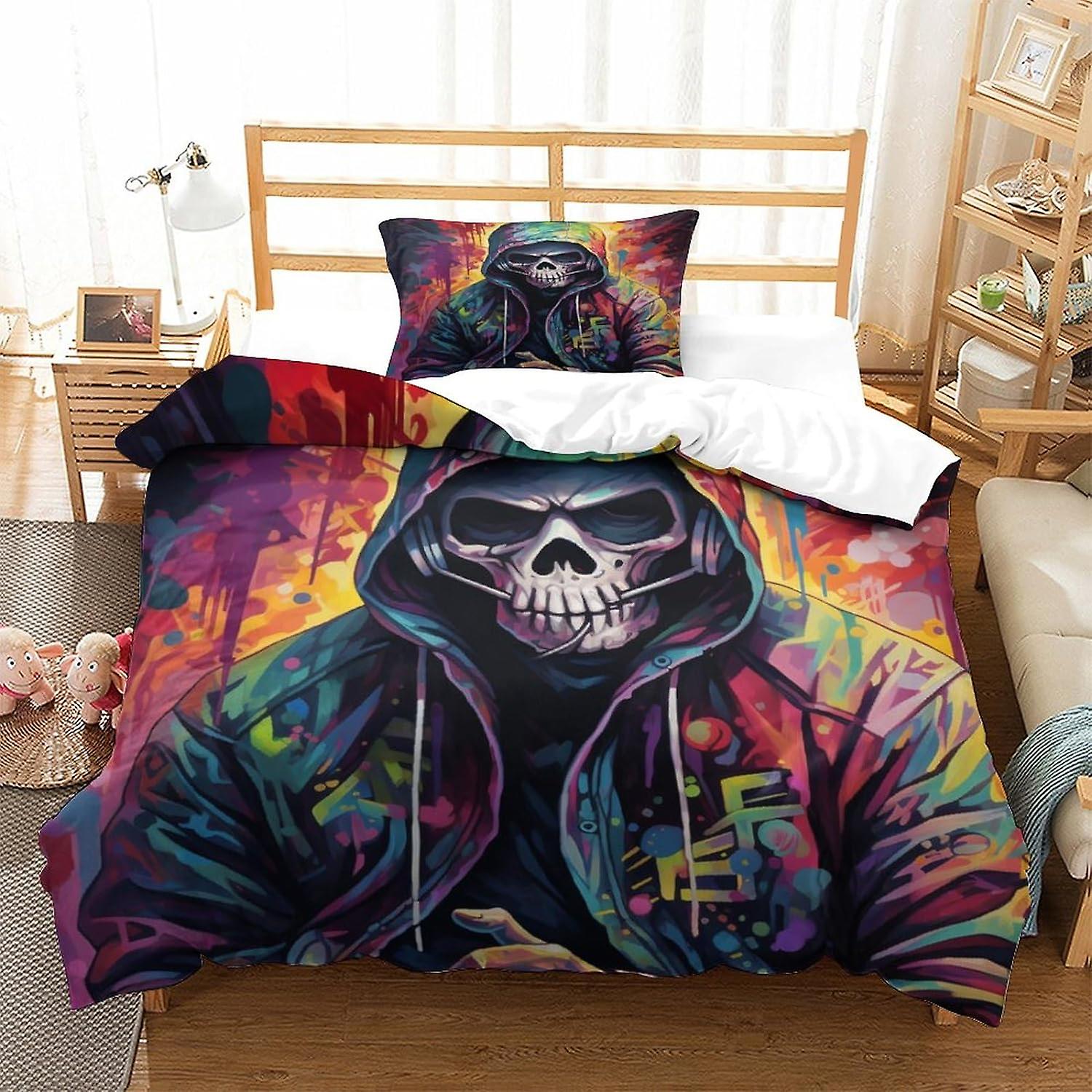 PGtaa Human Skeleton Teens Duvet Cover Modern Comforter Cover for Children Duvet Cover Set Bedding Set Breathable 2-Piece Set Soft Microfiber with Zip
