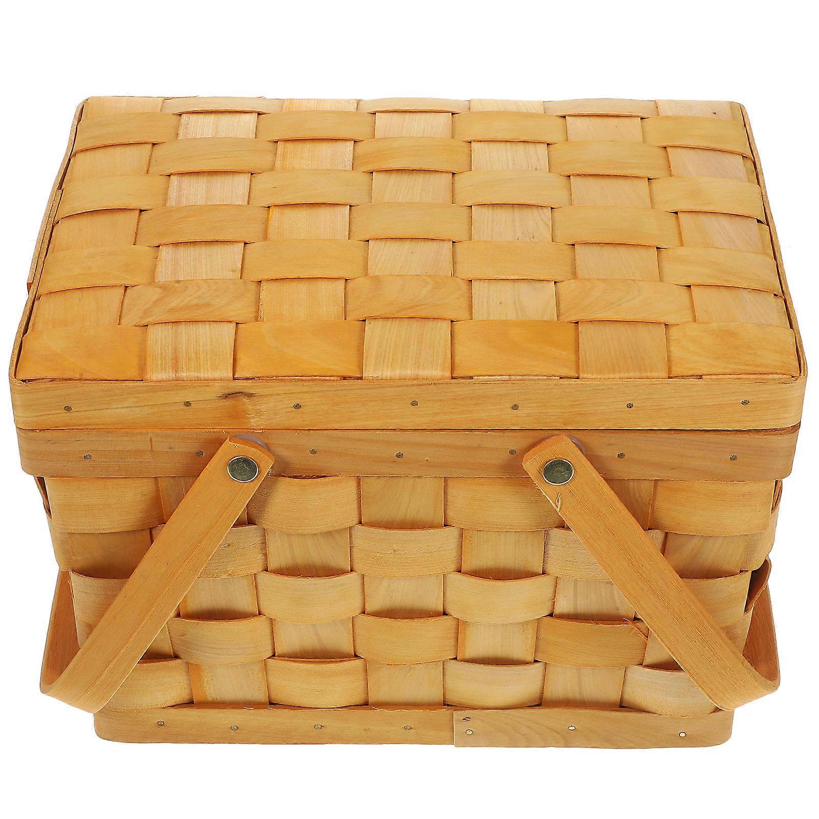 Wooden Picnic Basket With Double Handles For Outdoor Gatherings 27.5X20X19CM Rectangular Shape Lightweight 2Pcs
