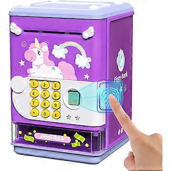 Piggy Bank Toy Electronic Mini ATM Savings Machine with Personal Password & Fingerprint Unlocking Simulation - Music Box with Songs for Kids, Boys and
