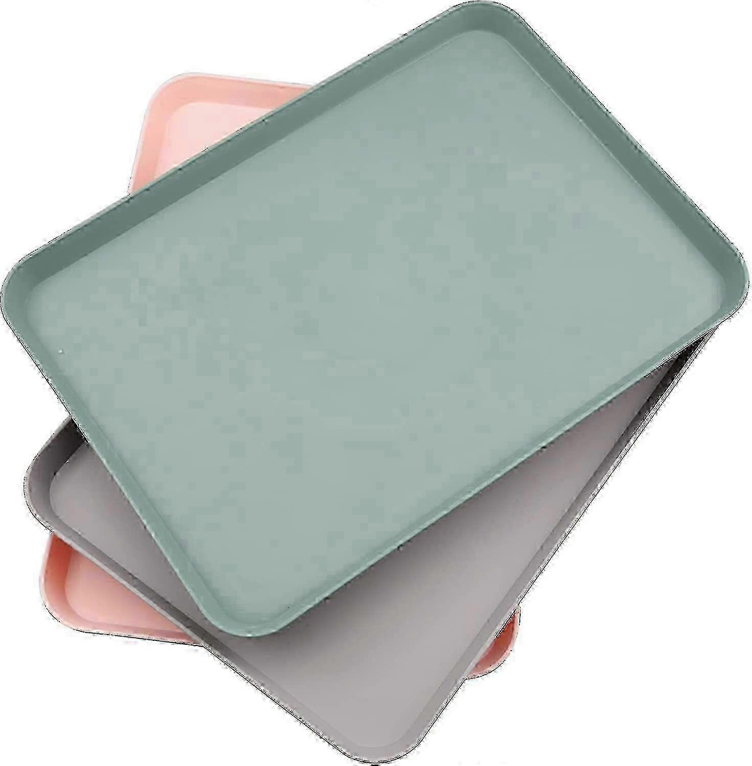 Plastic Serving Trays Set of 3, Small Rectangular Kitchen Trays for Dining Room, Cafe, Home Use in Pink, Grey, Grey-Green