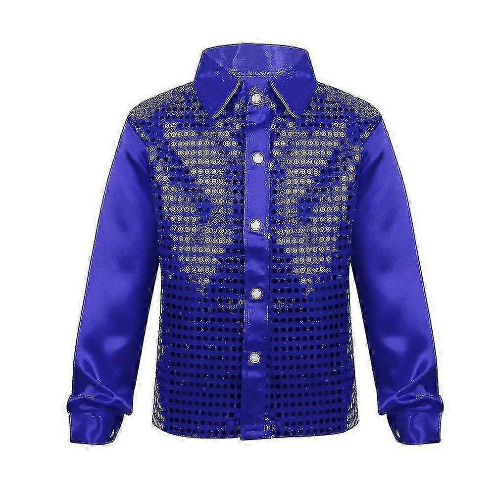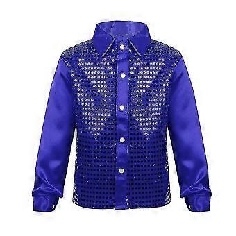 Boys Button Down Shirts Disco Hip-hop Jazz Dance Tops Sequins Show Dancewear