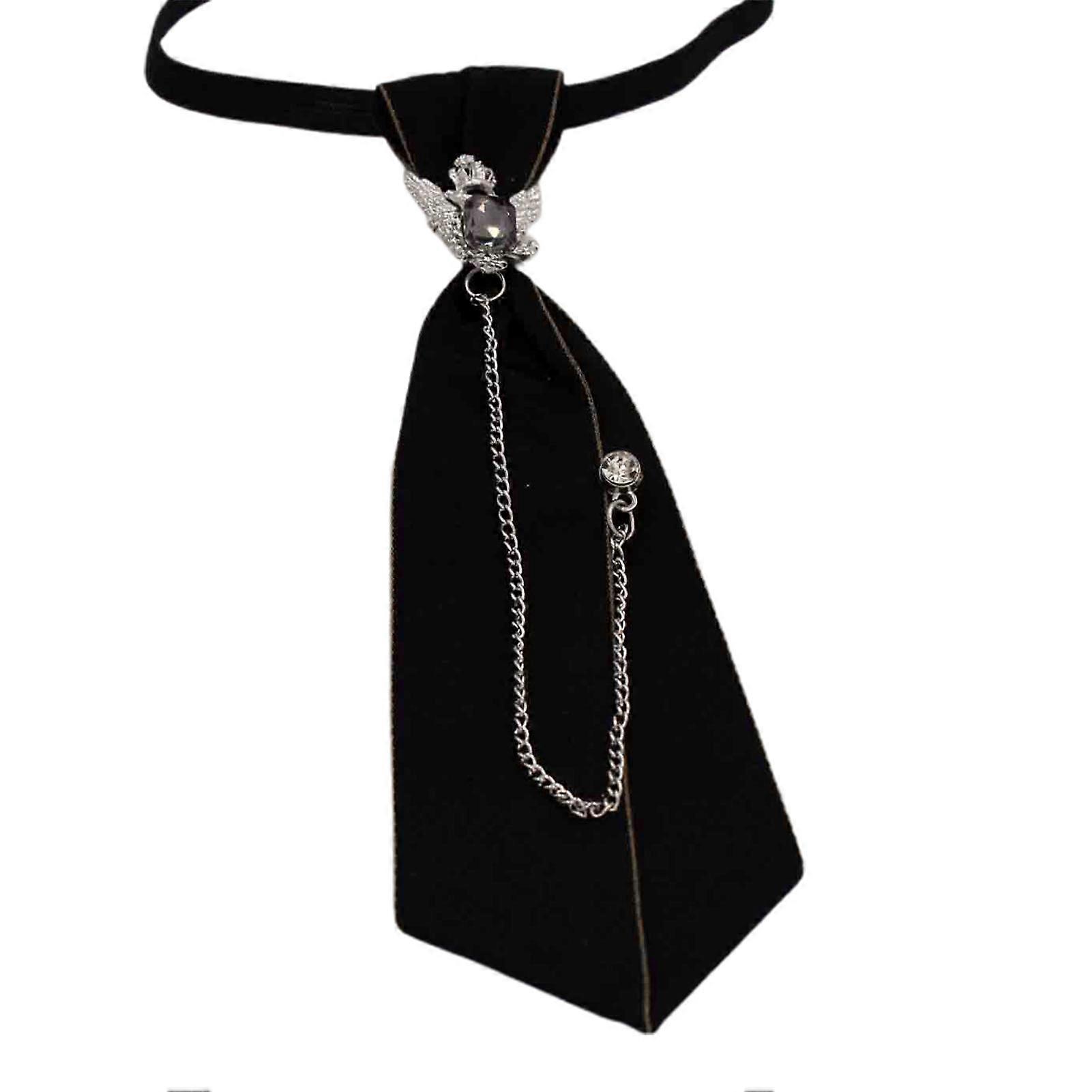 Boys Collar Tie Ribbon Rhinestone Jewelry Decor Adjustable No Tying Match Clothes Anti-wrinkle Chain School Uniform Necktie Garment Accessory