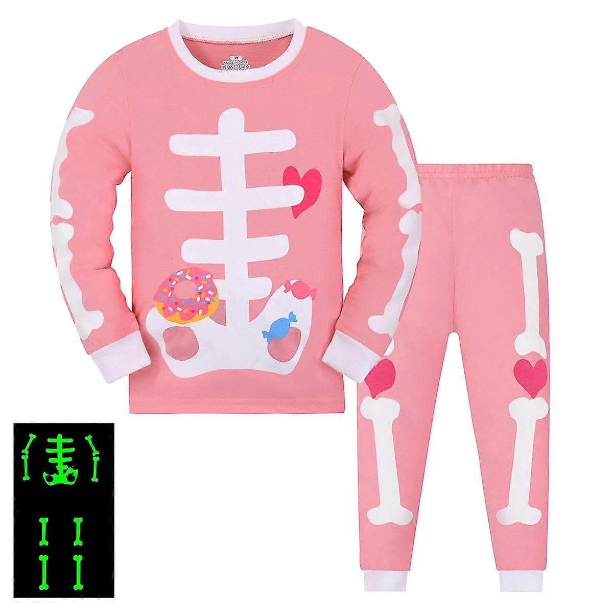 Boy's Long-Sleeved Pajama Set Two-Piece Pure Cotton Ribbed Nightwear with Glow-in-the-Dark Print