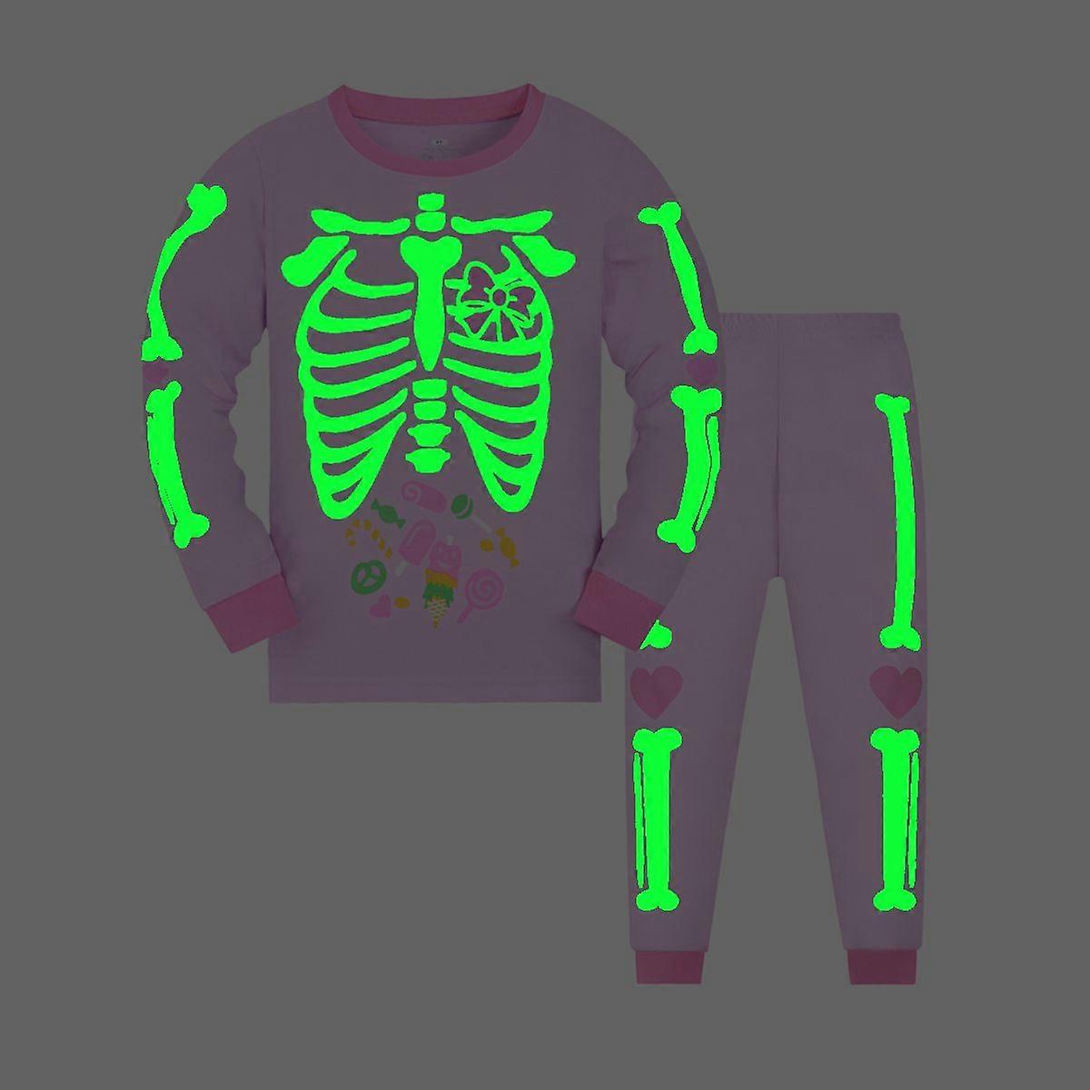 Boy's Long-Sleeved Pajama Set Two-Piece Pure Cotton Ribbed Nightwear with Glow-in-the-Dark Print