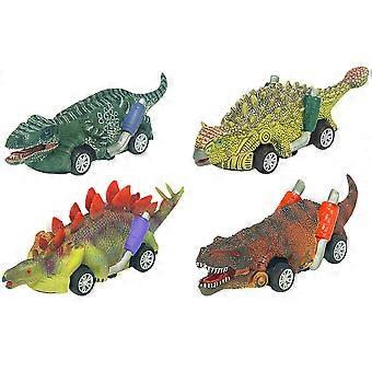 Pull Back Dinosaur Toy Car Set for Kids Playing 4Pcs Assorted Color Plastic Vehicles