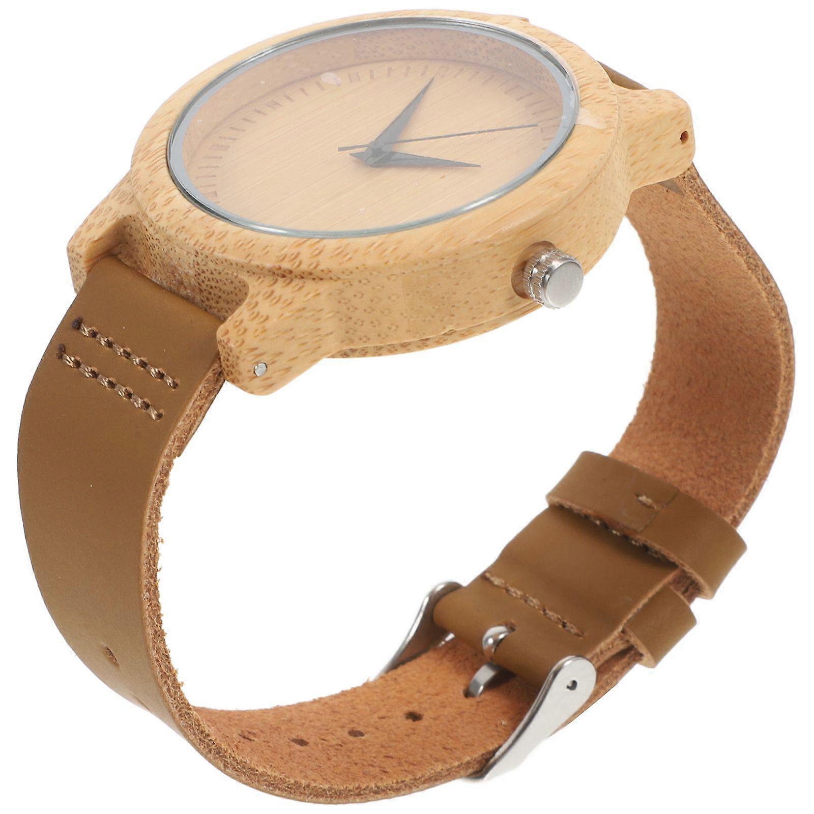Quartz Watch Wooden Surface Fashion Wristwatch PU Belt Quartz Wristwatch for Men Male