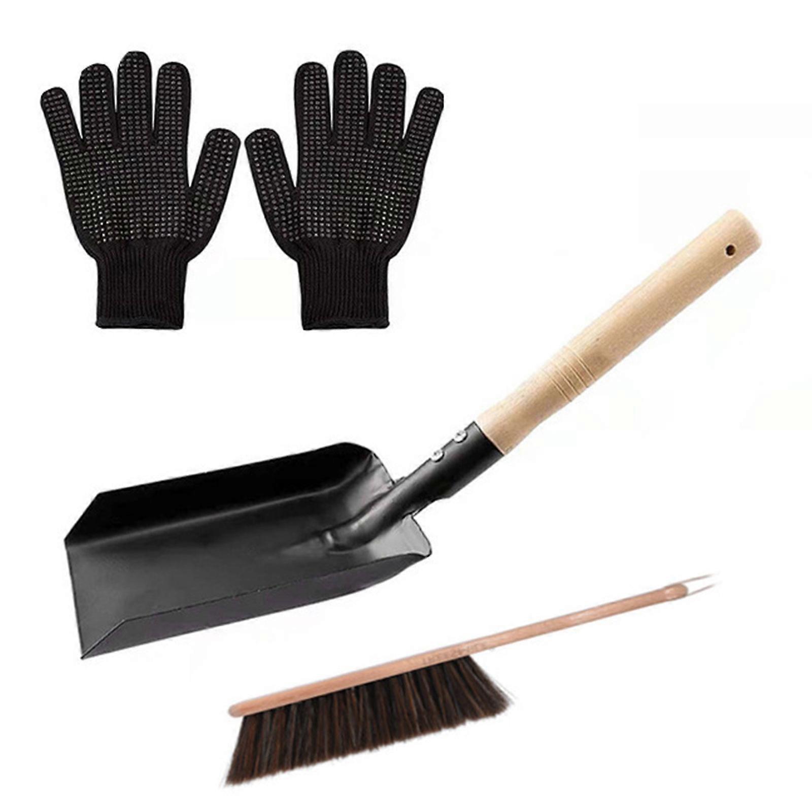 Cleaning Tool Set Handle Shovel Silicone Gloves with Brush Fireplaces Shovel & Brush Fireplaces Tool Set Metal Brush Pan