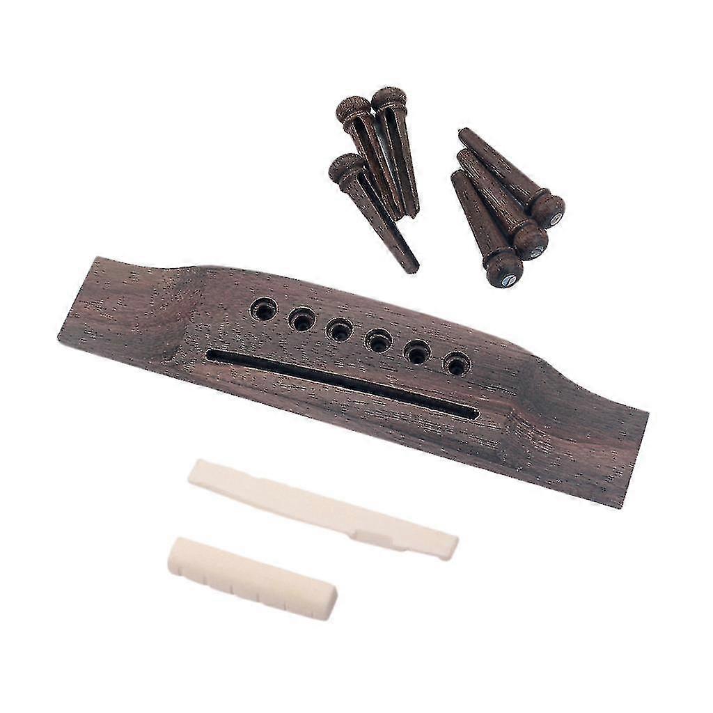 Acoustic Guitar Replacement Set Bridge End Pins Bone Saddle & Nut And Wood Bridge Parts