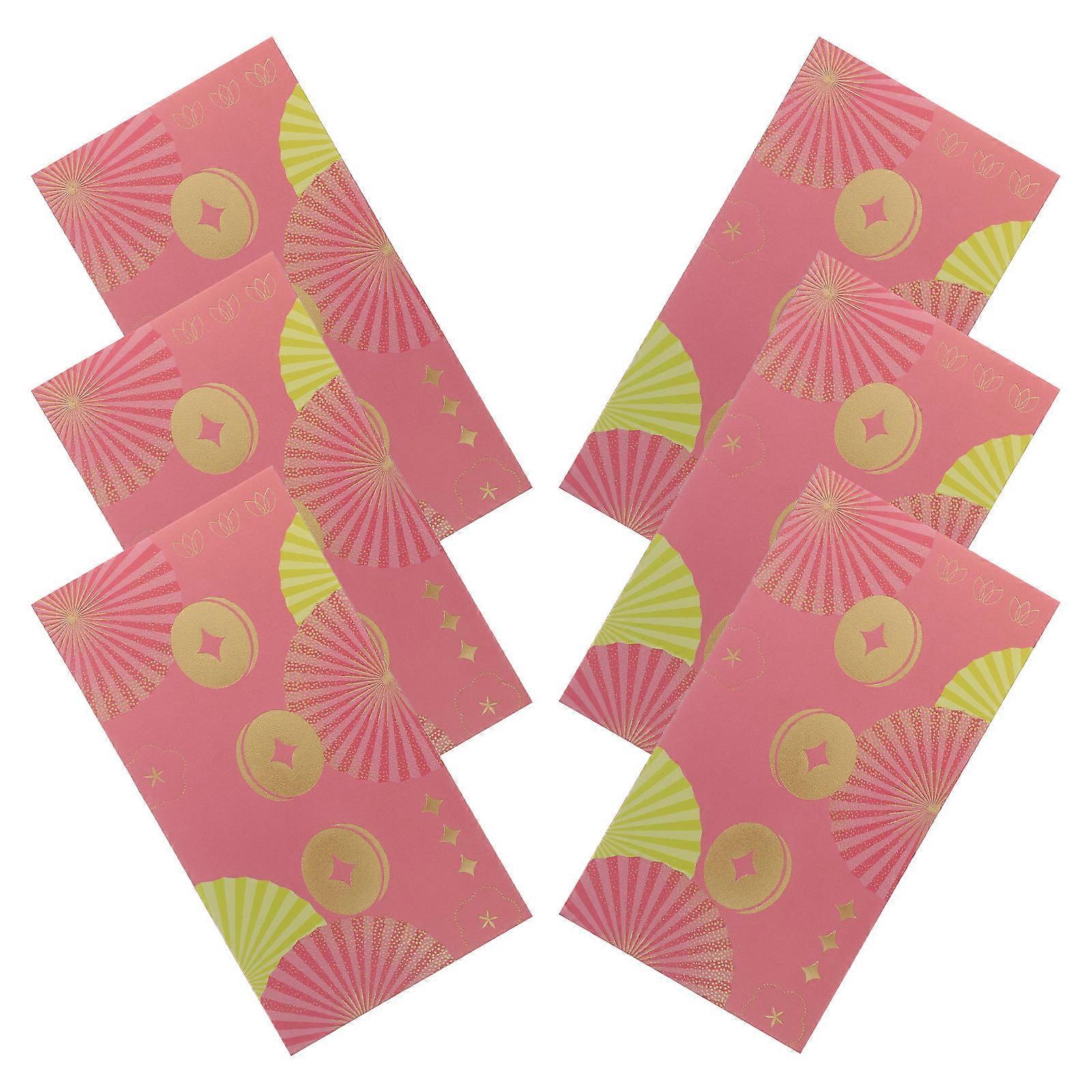 Pink Paper Red Envelope Money Holder for Wedding Use 6Pcs Set