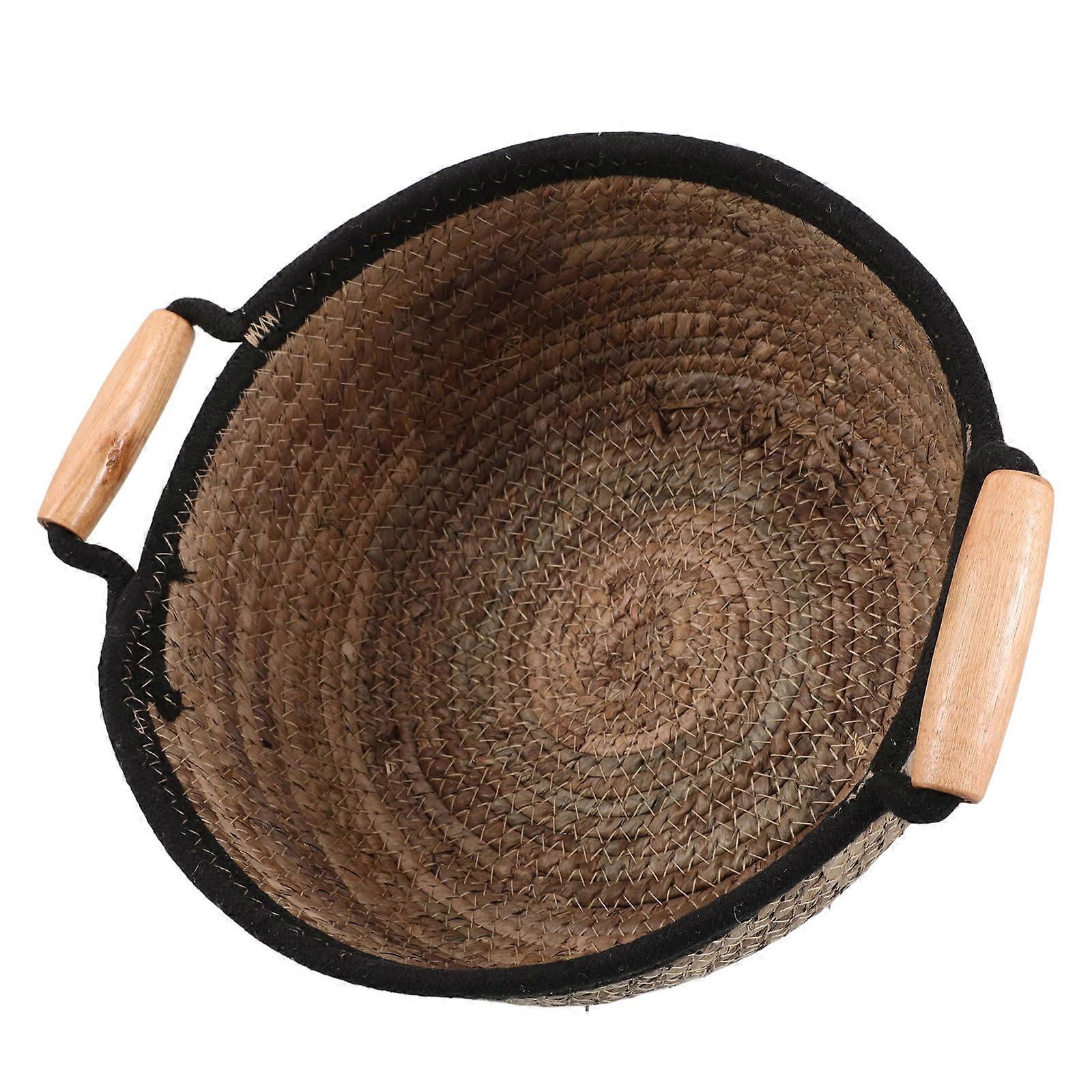 Round Storage Basket with Handles for Bathroom Multifunctional Woven Straw Organizer Brown 12.5 x 8.5 x 6 inches