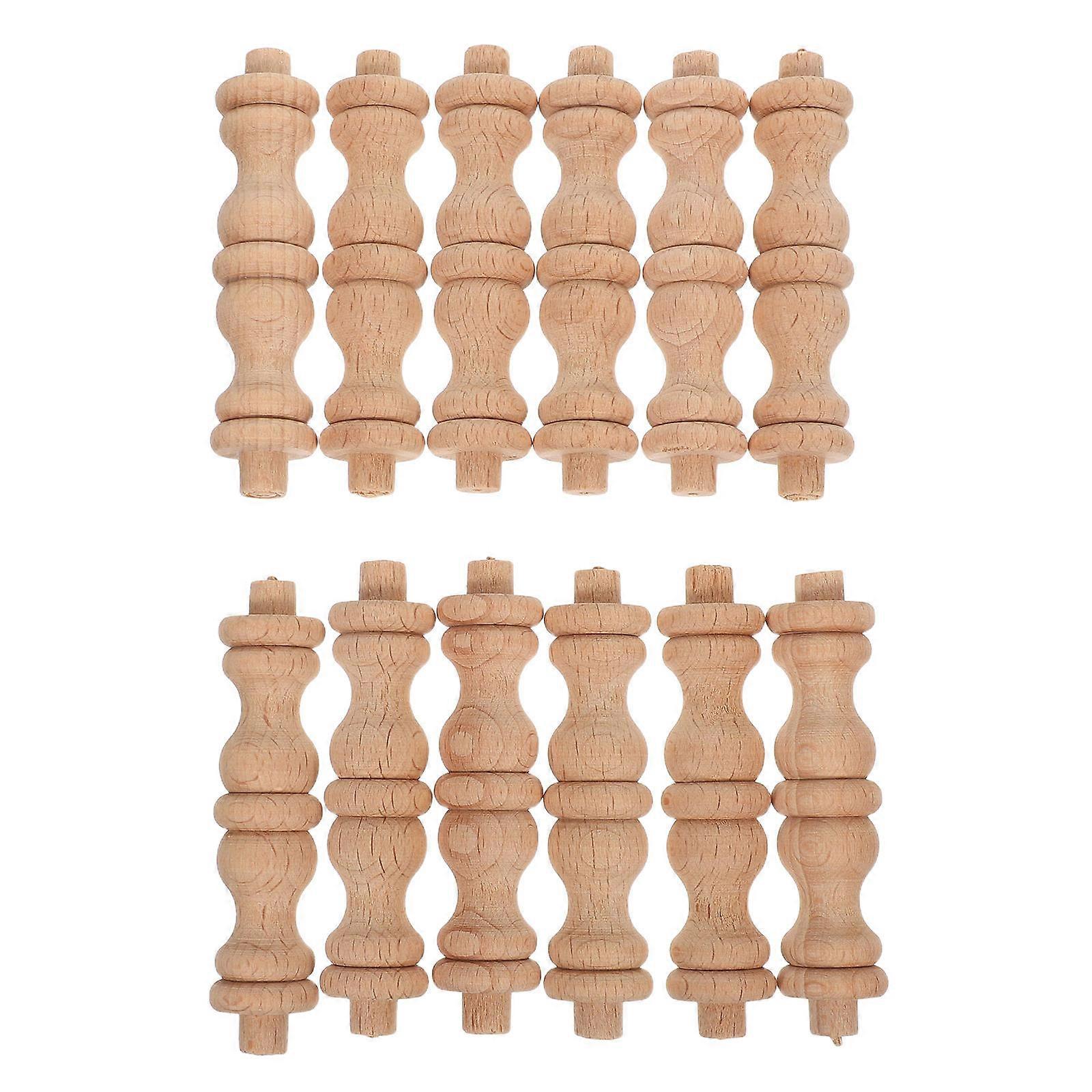 Rustic Spindles For Cabinet Wooden Baluster Spindles European Style Rectangular Shape Solid Wood Decoration 12Pcs