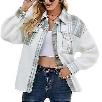 Women's Plaid Wool Button Down Wool Blend Jacket Casual