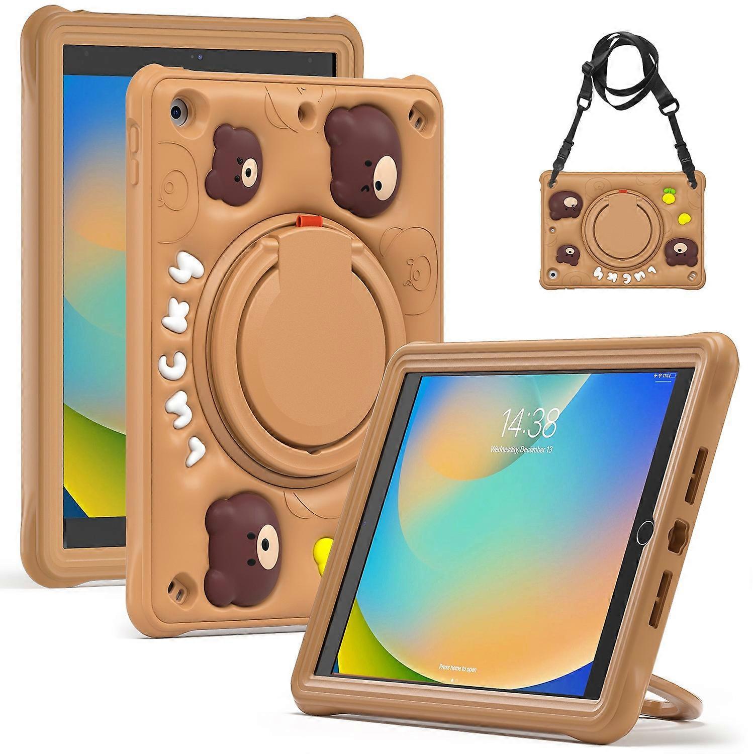 S3e For iPad 10.2 (2021) (2020) (2019) Case Cartoon Bear Silicone i3m Kickstand Tablet Cover with St