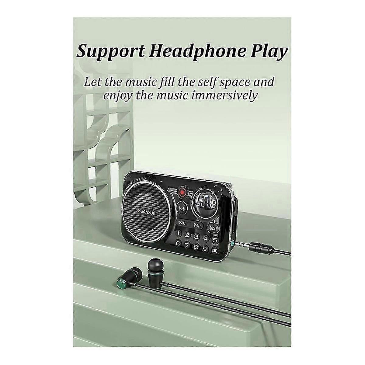 SANSUI FM Radio with Bluetooth 5.0 Speaker for Elderly, HiFi TF/USB MP3 Player with Recording