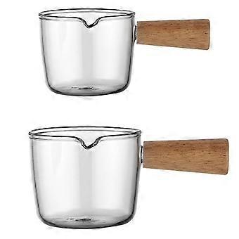 1 uppsättning mjölkkopp i glas Kaffe Latte Art Cup Mjölkförvaringskopp med trähandtag