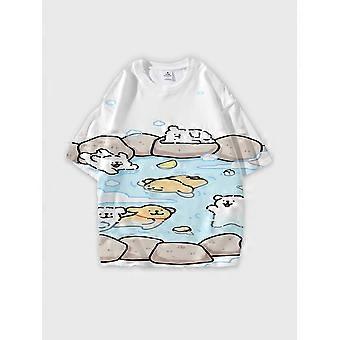 T-shirt rund hals Tecknad film mönster lös kortärmad JW6763