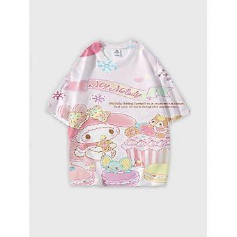 T-shirt rund hals Tecknad film mönster lös kortärmad JW1266