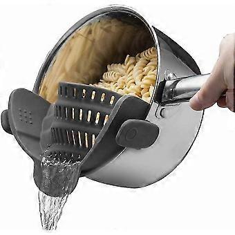 Värmebeständigt silikondurkslag för pasta och grönsaker, clip-on sil för skålar och stekpannor - Grå