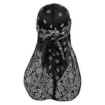 Assorted Paisley Bandana Doo rag Cap Headwraps Men's Women's Silk Durag with Long Tail and Wide Straps for 360 Waves Black Free Size