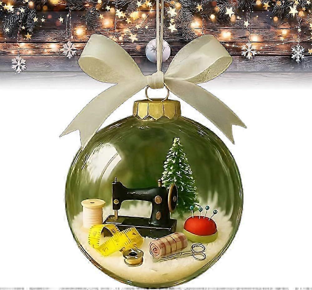 Unique Sewing-Themed Ornament: Celebrate your passion for sewing with this charming snow globe ornament featuring a vintage sewing machine, fabric rolls, pincushion, scissors, and bobbins all beautifully arranged in a festive globe. Festive Holiday Decoration: This transparent Christmas ball adds a touch of handmade magic to any holiday tree. Its snowy sparkle and detailed miniatures make it stand out among traditional ornaments. Perfect Gift for Sewists: An ideal Christmas present for sewing enthusiasts, quilters, or crafters. Show your love with a thoughtful keepsake that reflects their favorite hobby. Vintage & Timeless Design: With a retro sewing machine and classic holiday details, this ornament blends nostalgia with festive charm, making it a treasured decoration for years to come. Holiday Keepsake Ornament: More than just decor, this snow globe symbolizes the joy of handmade gifts and the love sewn into every project a meaningful piece for family and friends alike.