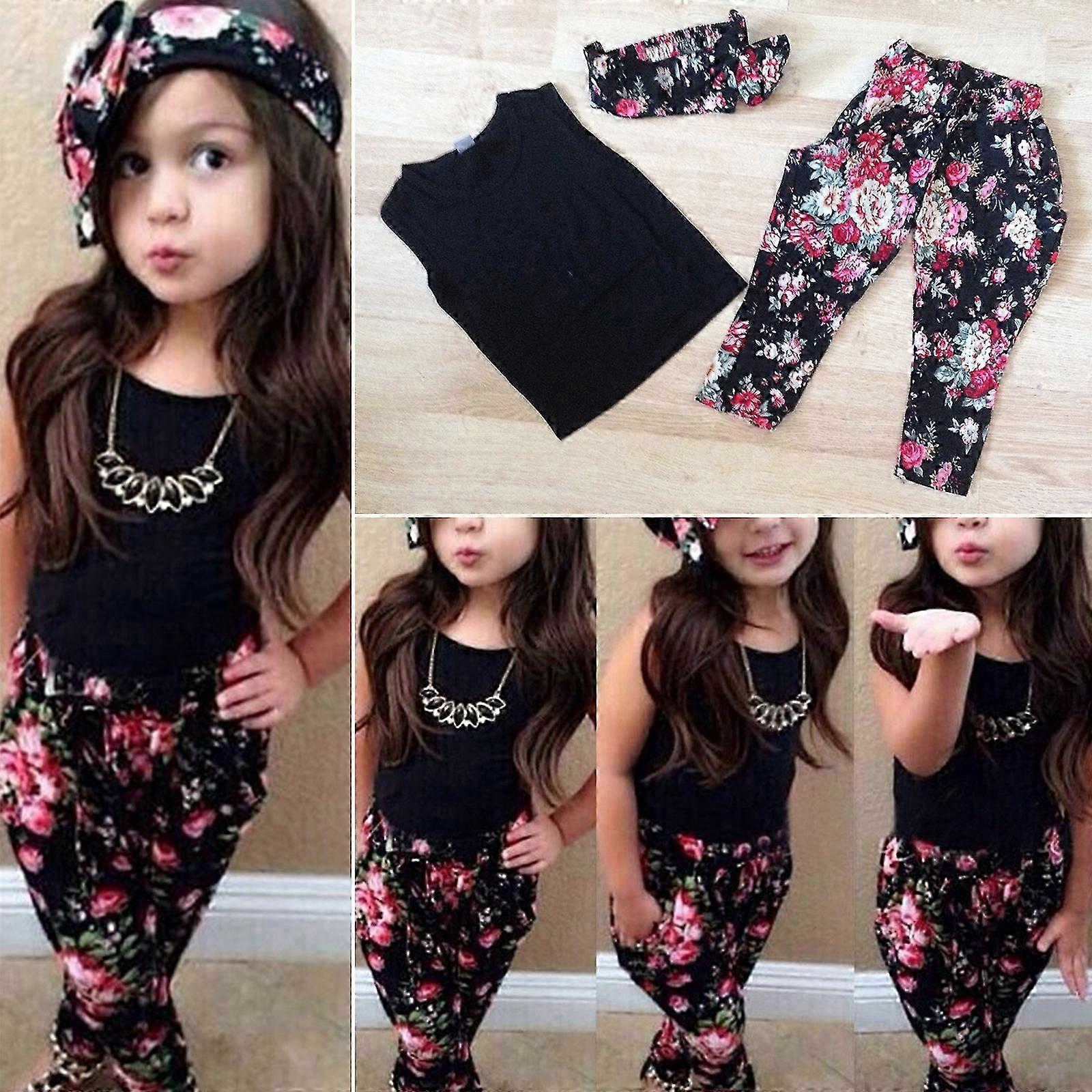 1-8 Years Kid Girl Tank Tops + Headwear + Pants Set
