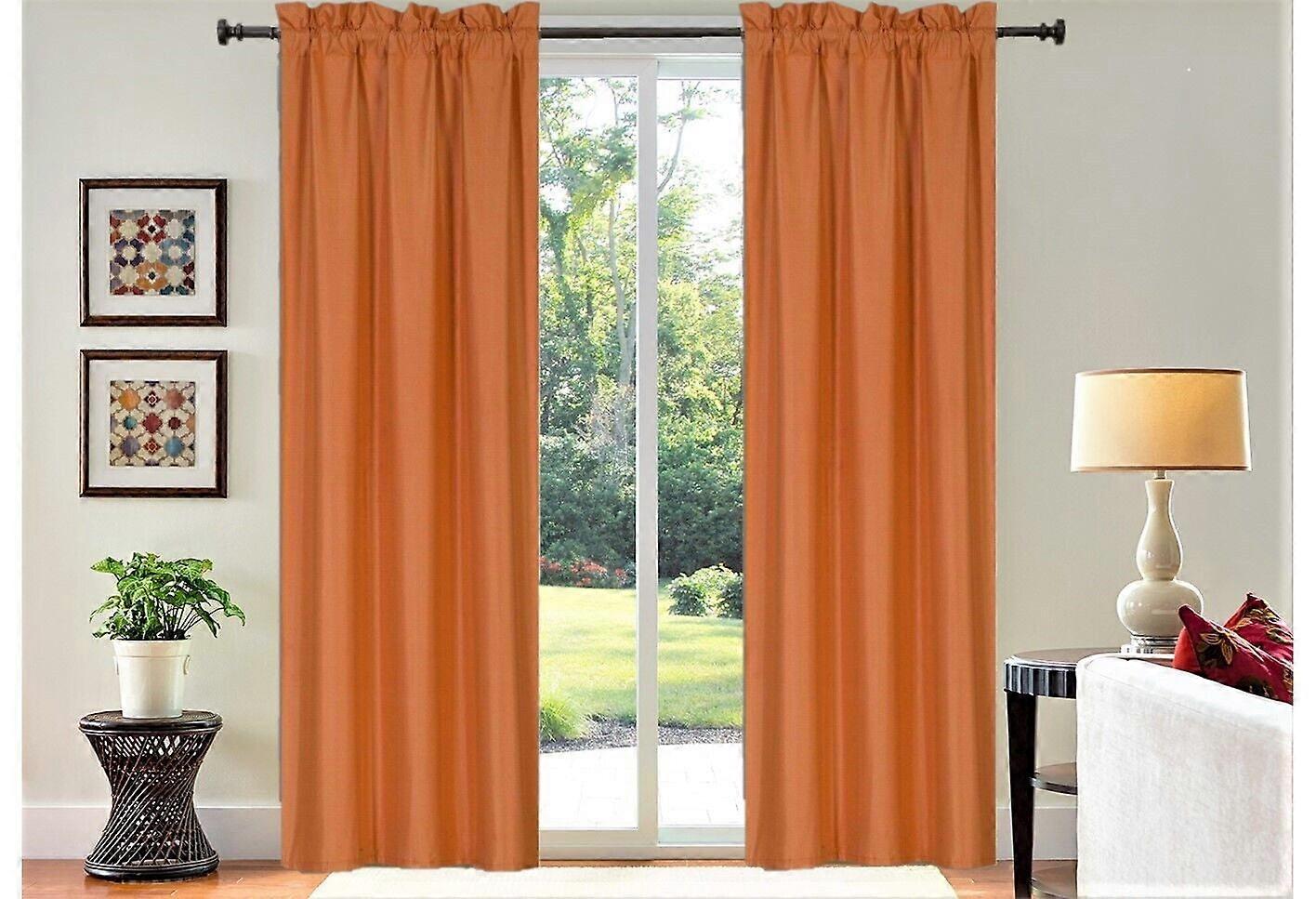Set of 2 panels persian collection matte finish Not shiny Orange solid blackout with rod pocket foam lined window curtain drape R64 84 length
