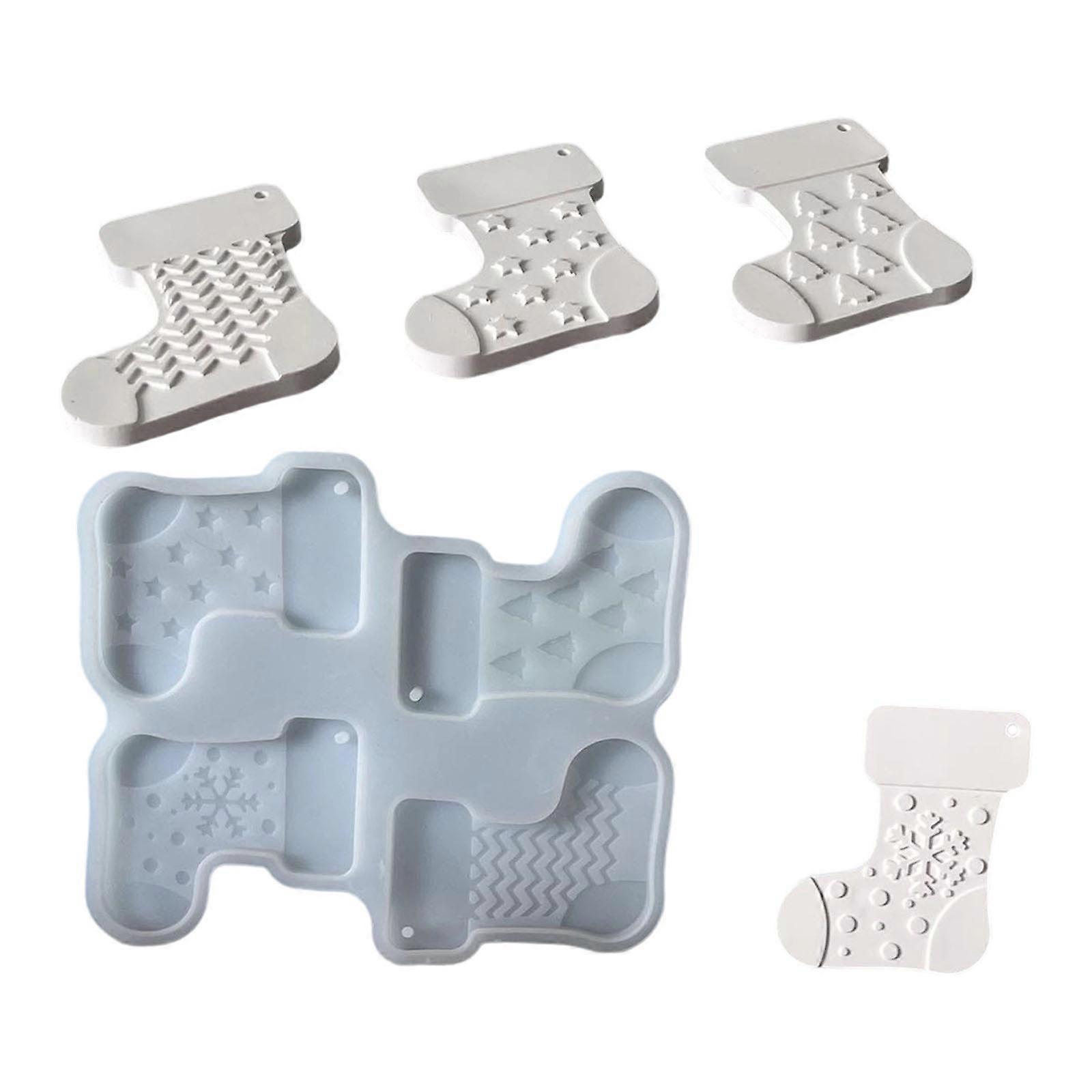 Silicone Christmas Ornament Molds Safe For Baking Crafts Heat Resistant Materials Holiday Stocking Decoration Making Set Multicolor