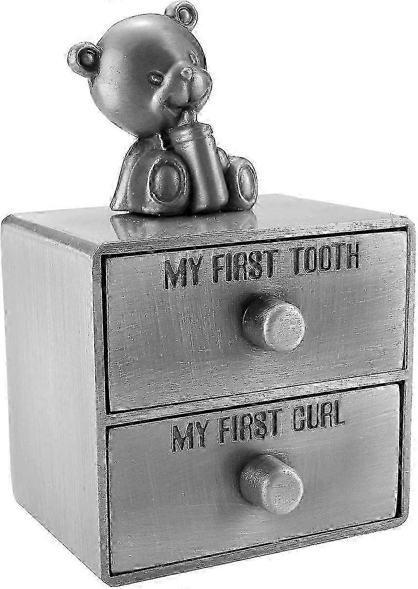 Silver Tooth Box, Baby My First Tooth and Curl Keepsake Box Set, Kids Teeth Organiserancient tin