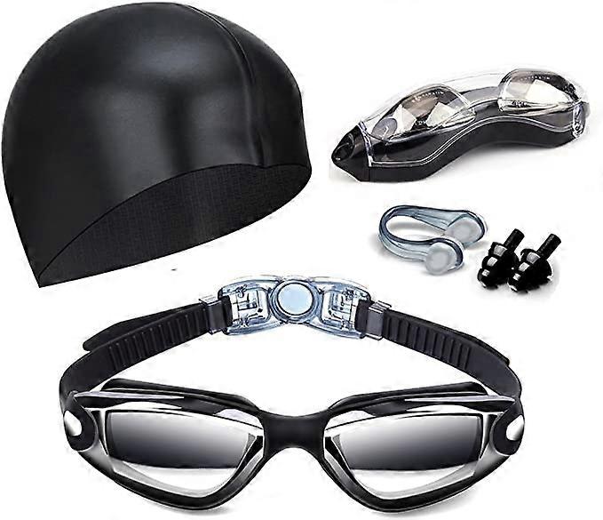 Swim Goggles Swimming Goggles No Leaking with Nose Clip, Earplugs and CaseBlack