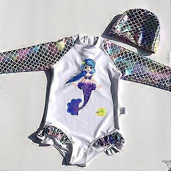 Sjöjungfru tryck Flickor Baddräkt Prinsessa Klänning Bikini För Barn 1-8 År Randiga Badkläder Ett stycke Set Barn Simning Med Kjol-1