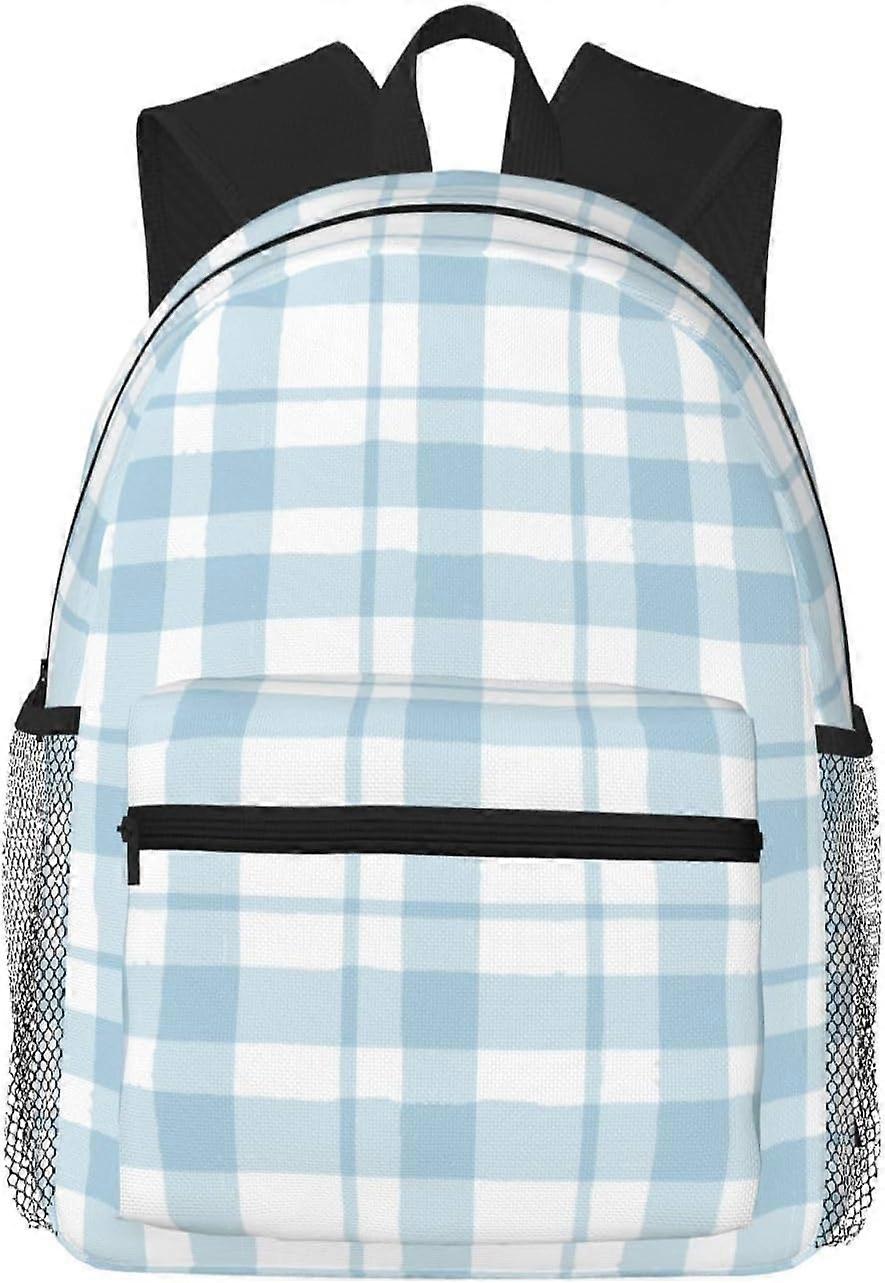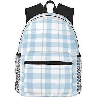 School Backpack Plaid Blue Check for Student Bookbag Casual Daypack Teens College Boys Girls Lightweight School Travel Rucksack