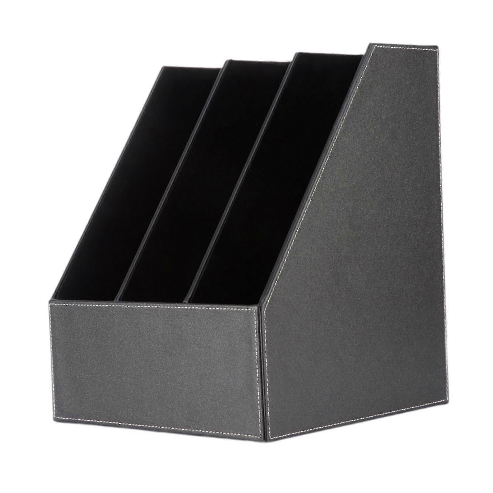 Desk File Organizer 3 Grids Vertical File Holder for Office Living Room Home Black