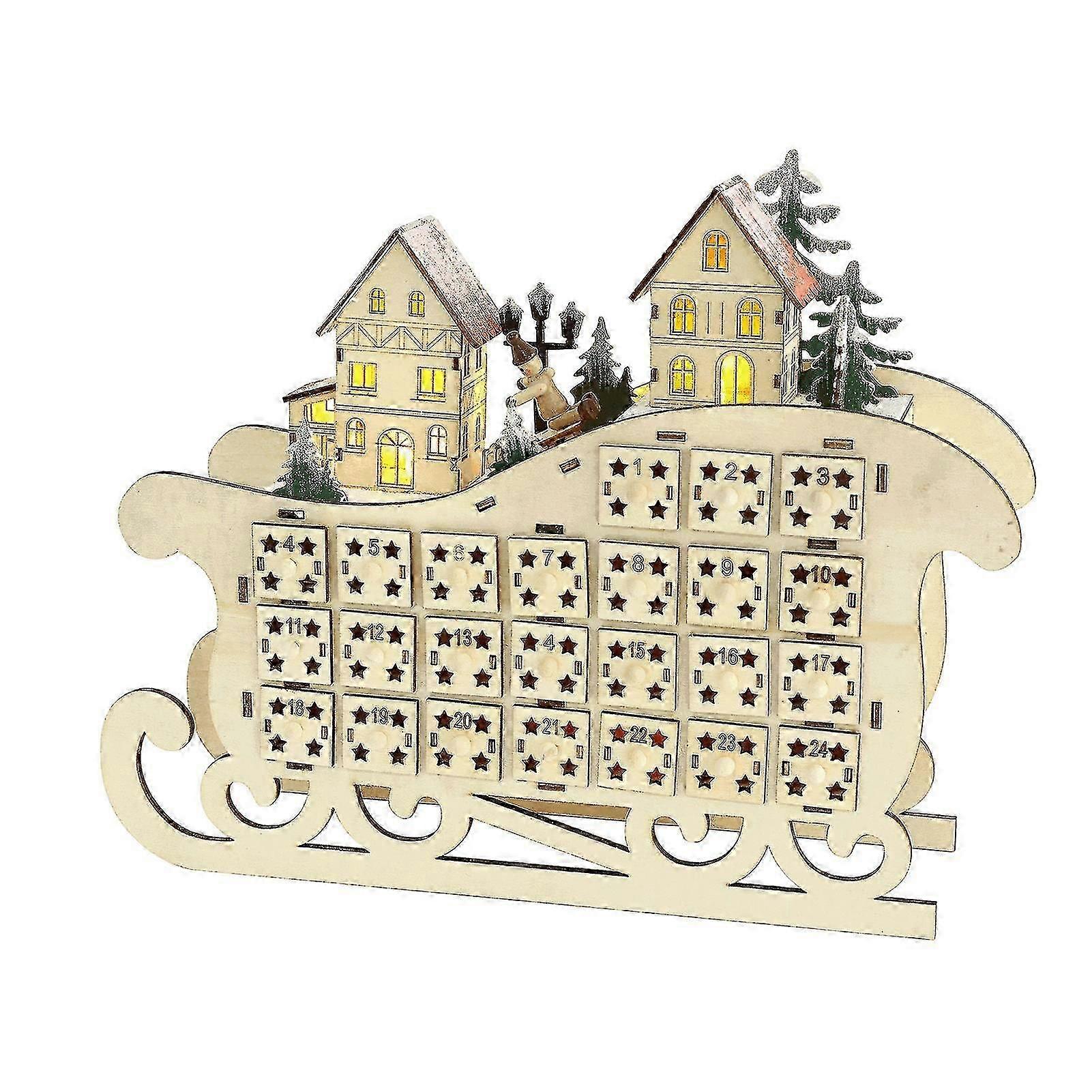 Desktop Calendar Ornament Luminous Fade Resistant Burr-free Sled Shape 24 Countdown Christmas Calendars