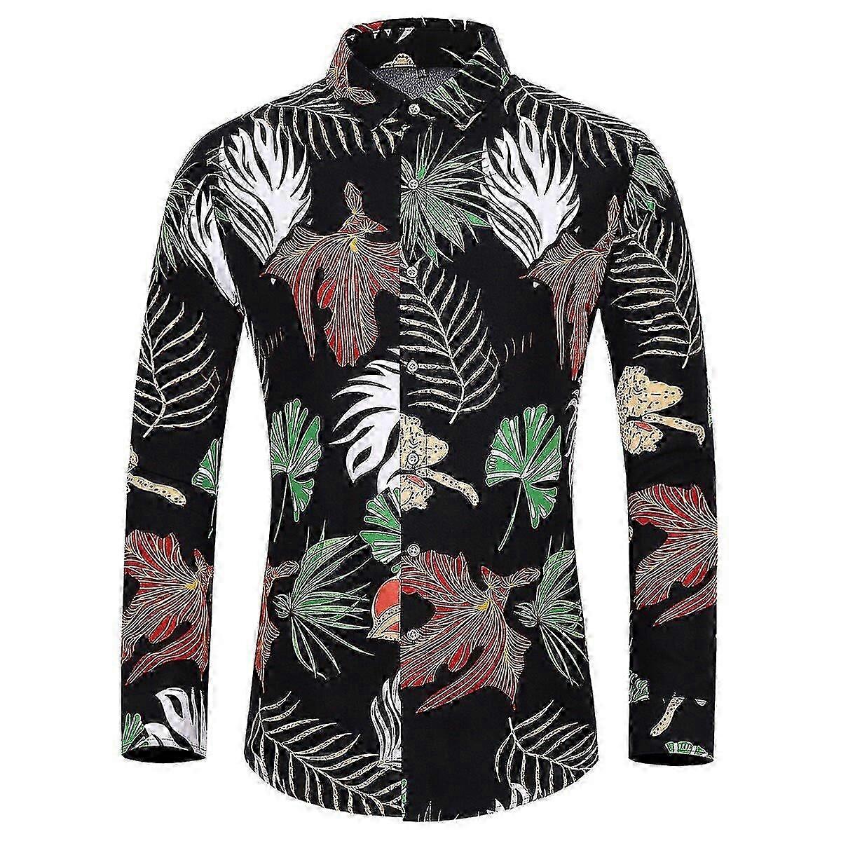 Sliktaa Mens Regular Fit Long Sleeve Leaves Print Plus Size Shirts