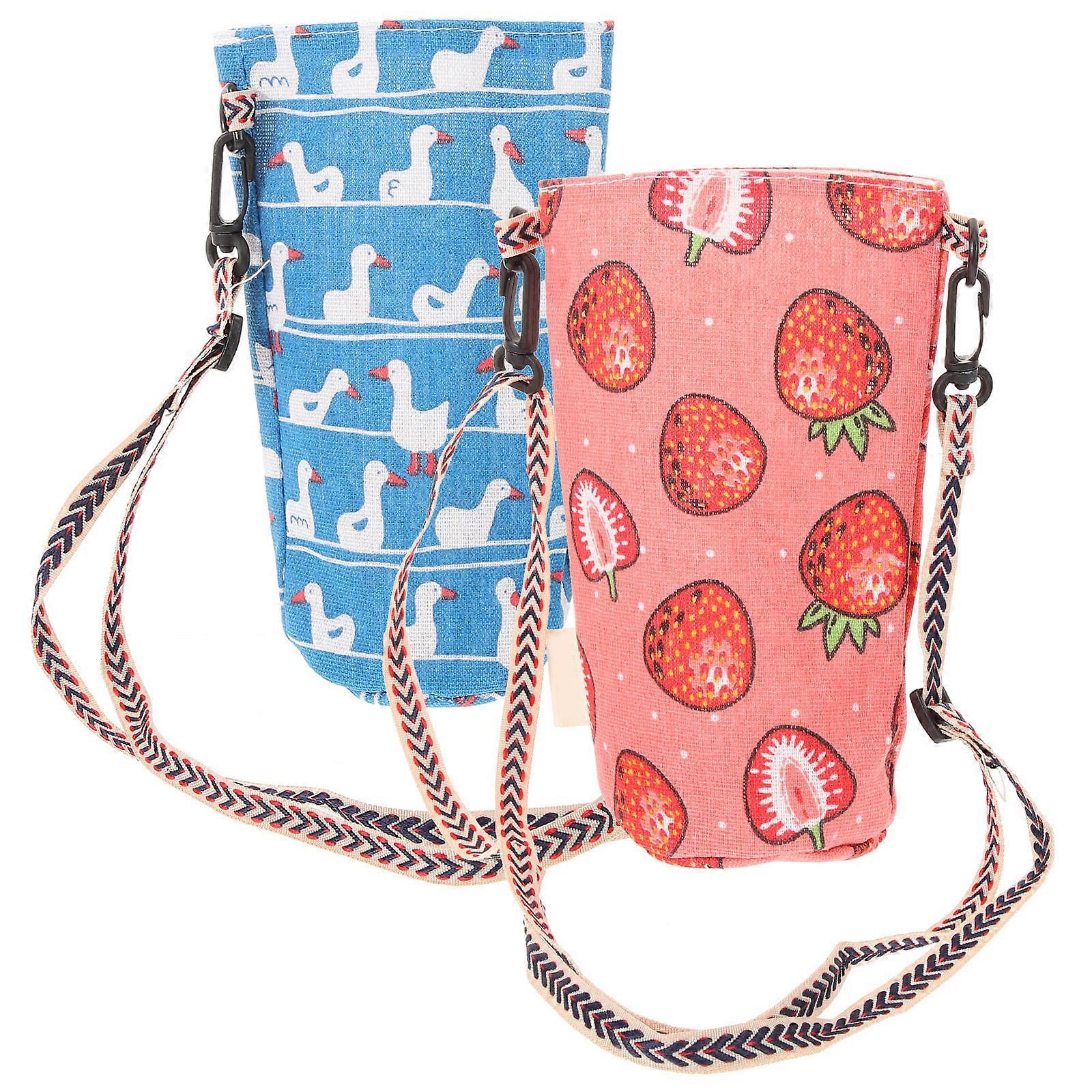 Durable Canvas Bottle Bags Portable Protective Outdoor Use Hiking Cycling Travel 2Pcs