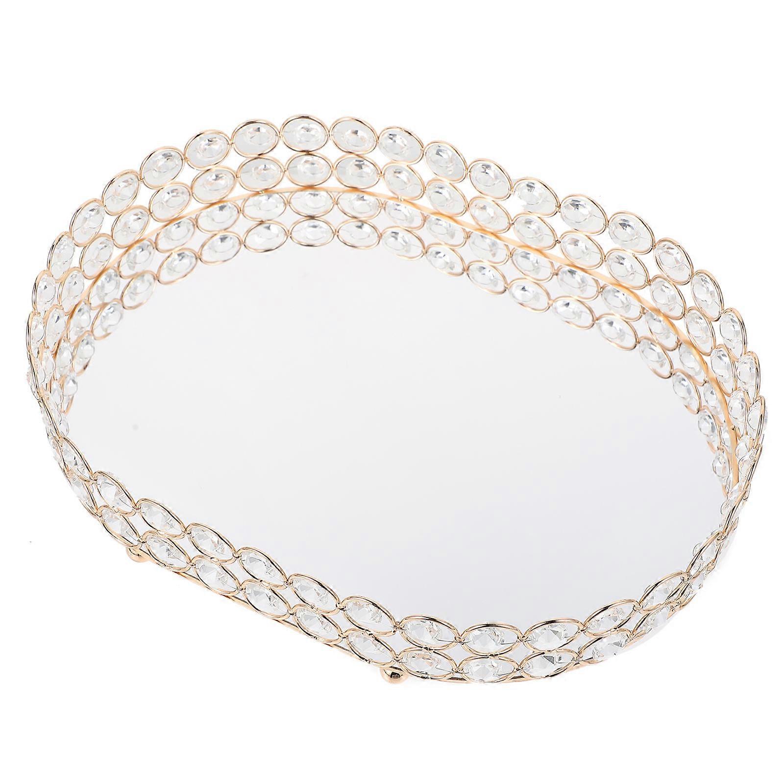 Jewelry Display Tray for Elegant Storage 1Pcs Golden Crystal Plate