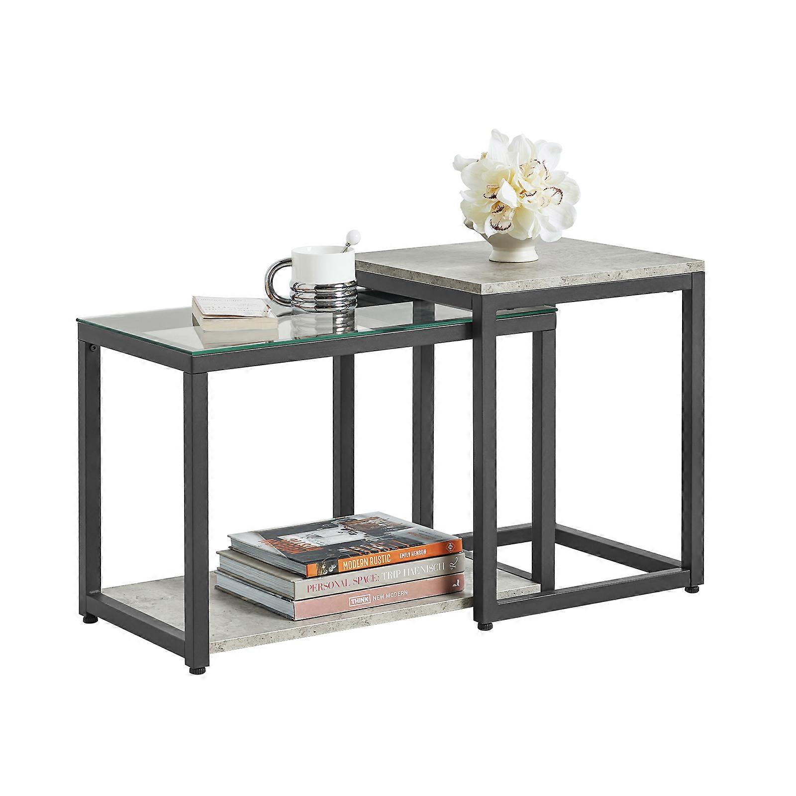 SoBuy Nesting Tables Set of 2 Coffee Table Side Table End Table,FBT35-HG