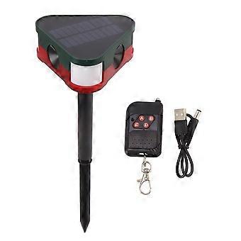 Solcellsdriven djuravskräckare med lång räckvidd, ljudljus, utomhusinfraröd sensor, larm med fjärrkontroll för fruktträdgård 1W 5V
