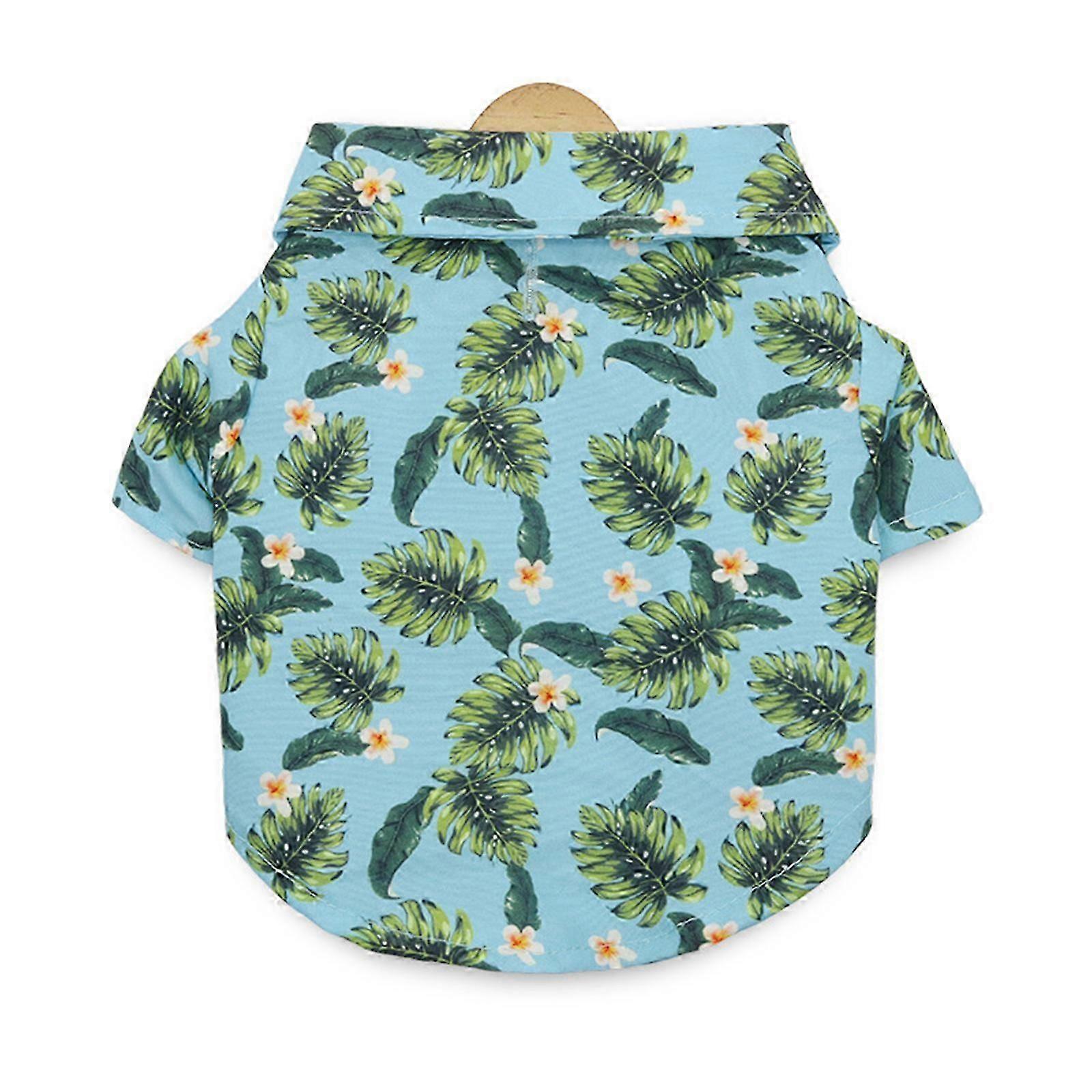 Summer Cats Dogs Shirt with Leaves Print Lapel Neck Clothes Outdoor Walking Dogs Cats Quick Drying Jumpsuit Comfortable 9 XL