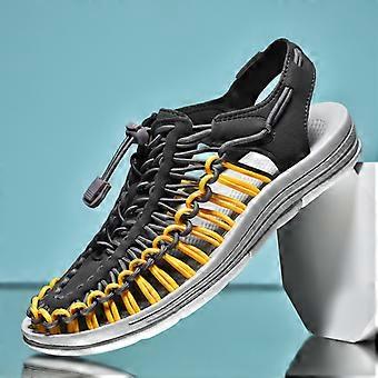 Summer Men Sandals Women Slippers Weaving Design Beach Sandals Breathable Casual Flat Sandals Outdoor Couples Sandals Size 48