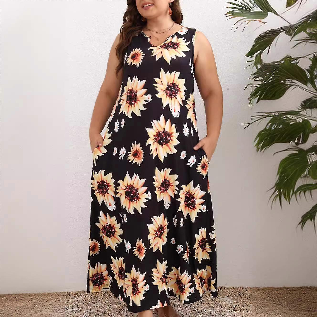 Summer Dress Fashion Plus Size Women's Sunflower Print Dresses