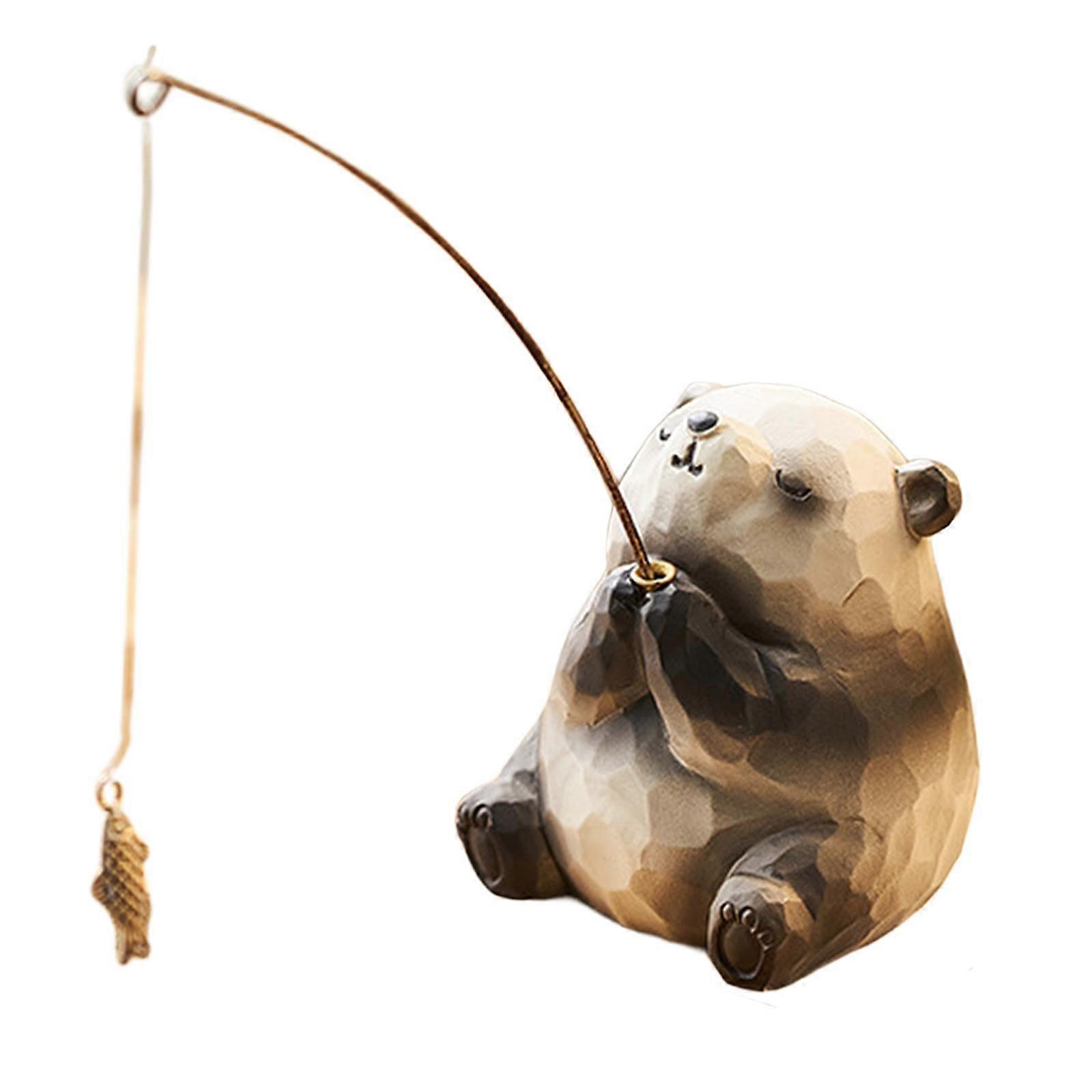 Cute Animal Fishing Figurine Table Ornament for Office Desks Indoor Entrance Panda